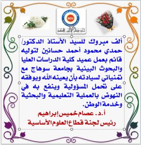 تعيين عميد الكلية عضوا بلجنة قطاع العلوم الأساسية بالمجلس الأعلى للجامعات تمهيدا لبدء الدراسة بالكلية