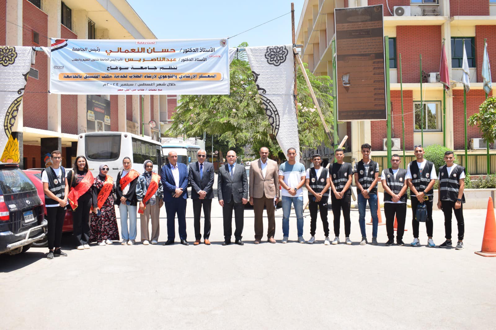 تفقد الدكتور حسان النعماني رئيس جامعة سوهاج، منذ قليل مكتب التنسيق الإلكتروني لطلاب الثانوية العامة للقبول بالجامعات للعام الدراسي الجديد ٢٠٢٤-٢٠٢٥، حيث تابع استقبال الطلاب في اول ايام المرحلة الاولي، للإطمئنان على سير اعمال العمل، يصاحبه الدكتور عبدالناصر يس يس نائب رئيس الجامعة لشئون التعليم والطلاب، واللواء طارق حافظ مدير عام الأمن الجامعي، والدكتور علاء غالب رئيس أسرة طلاب من أجل مصر ، والمهندس محروس حارس رئيس مكتب التنسيق، والمهندس علاء الصادق نائب مدير التنسيق، وذلك بالحرم الجامعي القديم.