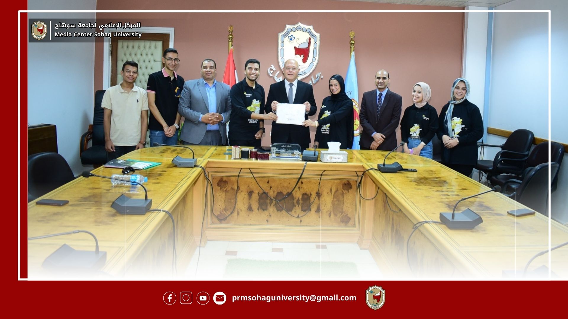 كرم الدكتور حسان النعماني رئيس جامعة سوهاج الفريق الطلابي الممثل لـ enactus الجامعة والذي فاز المسابقة Enactus Egypt النهائية ضمن 35 جامعة على مستوى الجمهورية، وذلك بحضور الدكتور عبدالعليم سعد مشرف الفريق والدكتور محمود عبد العليم المدير التنفيذي لصندوق دعم المبتكرين والنوابغ بالجامعة.