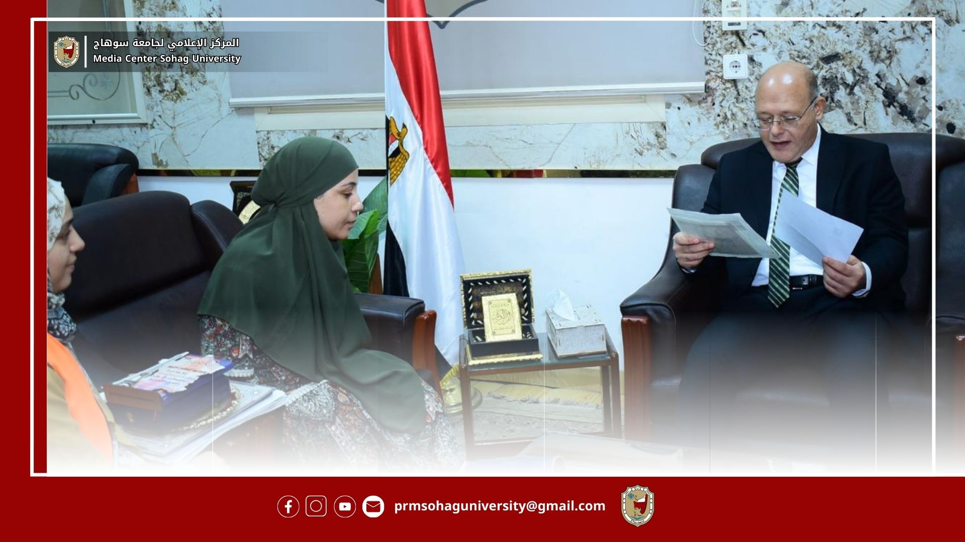 انطلاقاً من المبادرة الرئاسية (بداية)..رئيس جامعة سوهاج يستقبل طالبة مبدعة من الطلاب الجدد من ذوي القدرات الخاصة