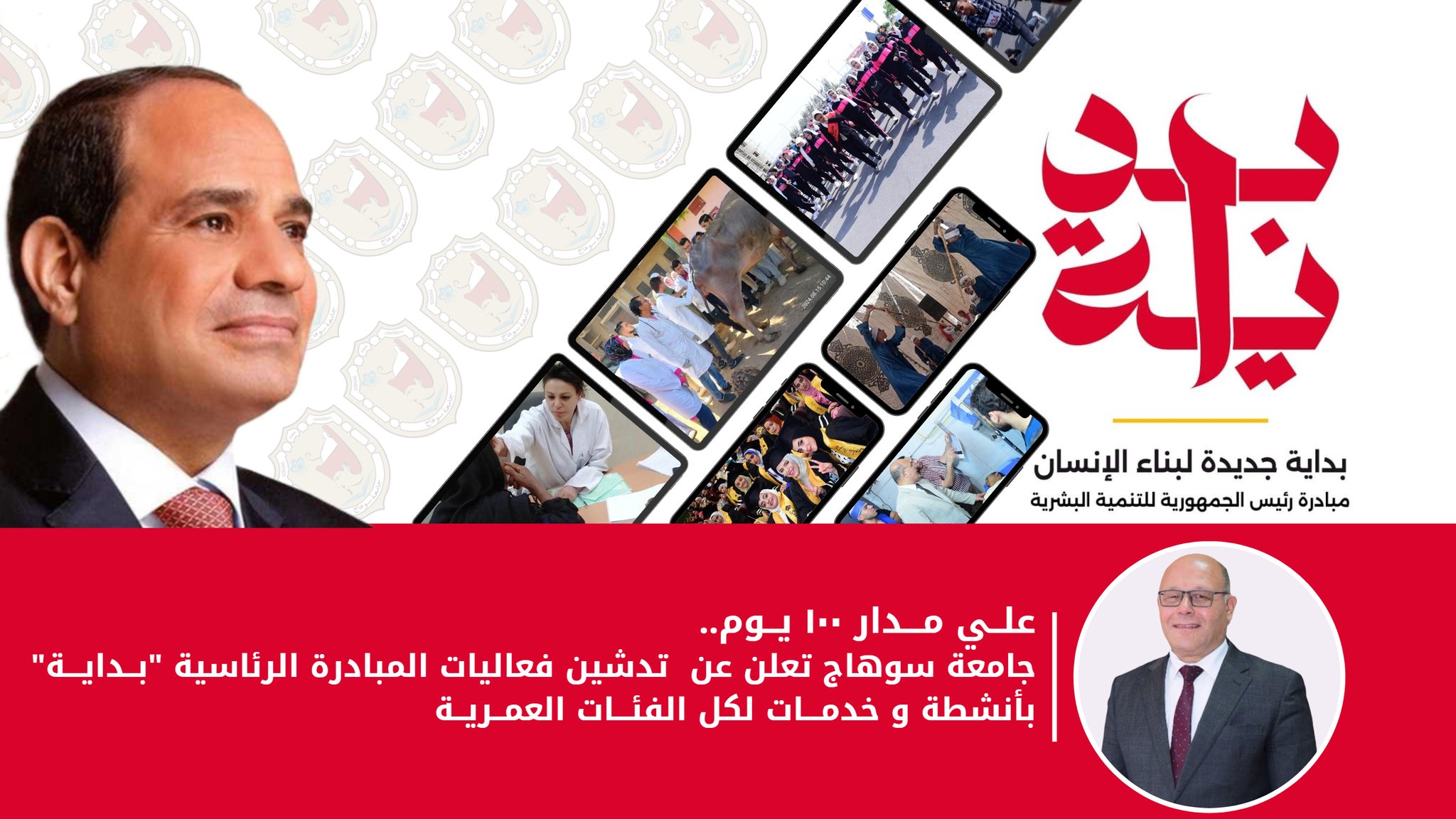 علي مدار ١٠٠ يوم.. جامعة سوهاج تعلن عن تدشين فعاليات المبادرة الرئاسية “بداية” بأنشطة و خدمات لكل الفئات العمرية