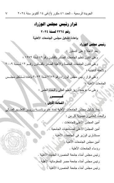 تهنئة .. قرر رئاسة الوزراء بعضوية الدكتور حسان النعمانى رئيس جامعة سوهاج في المجلس الأعلى للجامعات الأهلية