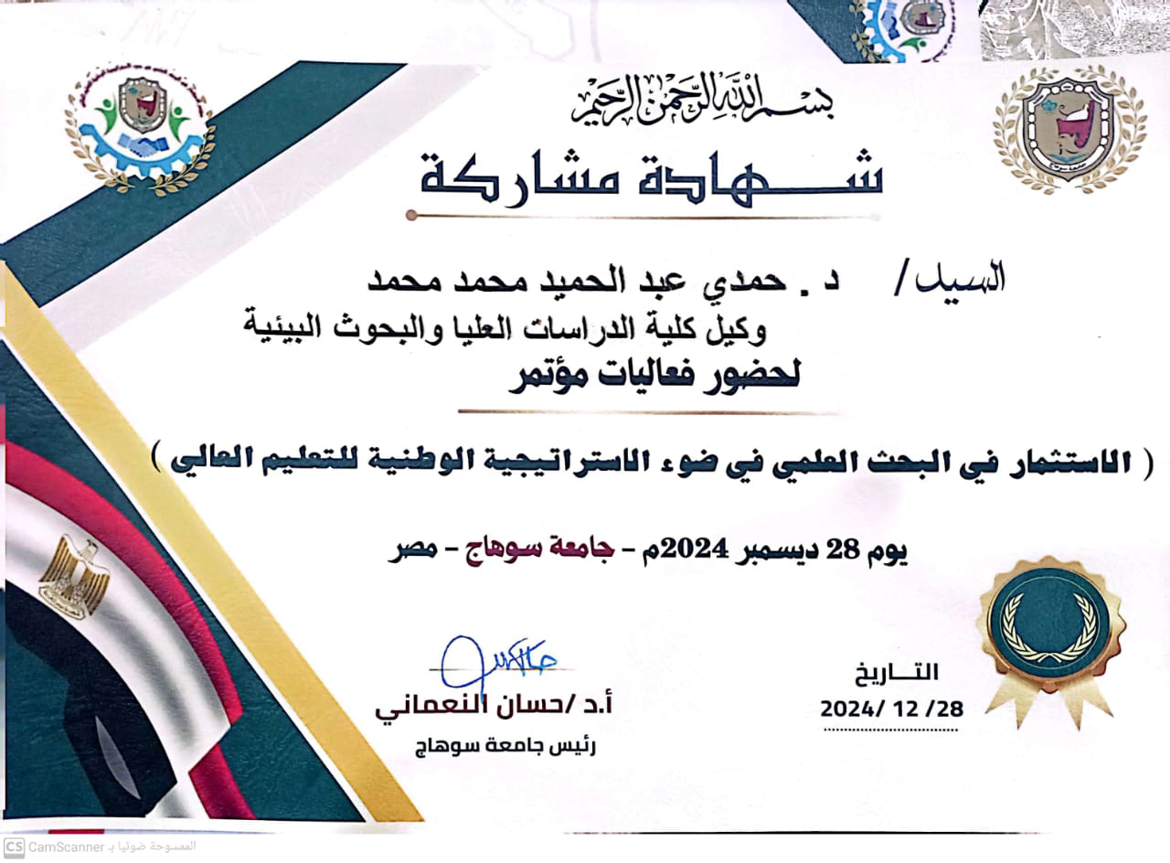 إشادة كلية الدراسات العليا و البحوث البيئية باستضافة جامعة سوهاج لمعالي الوزير و قيادات المجلس الأعلى للجامعات بقيادات المجلس الأعلى للجامعات