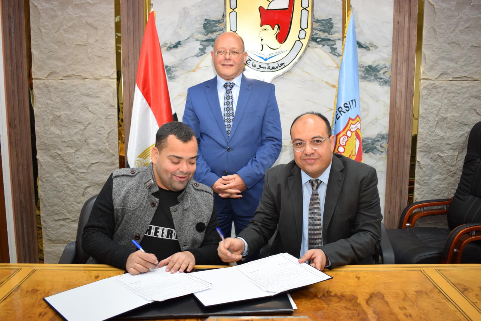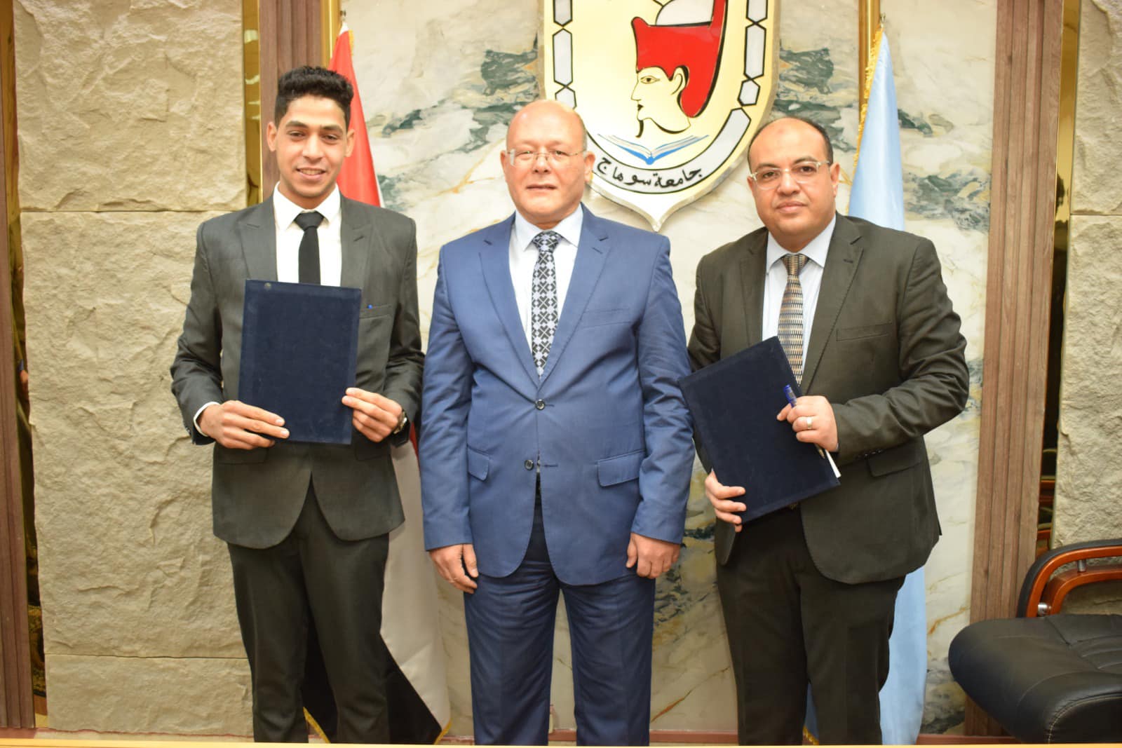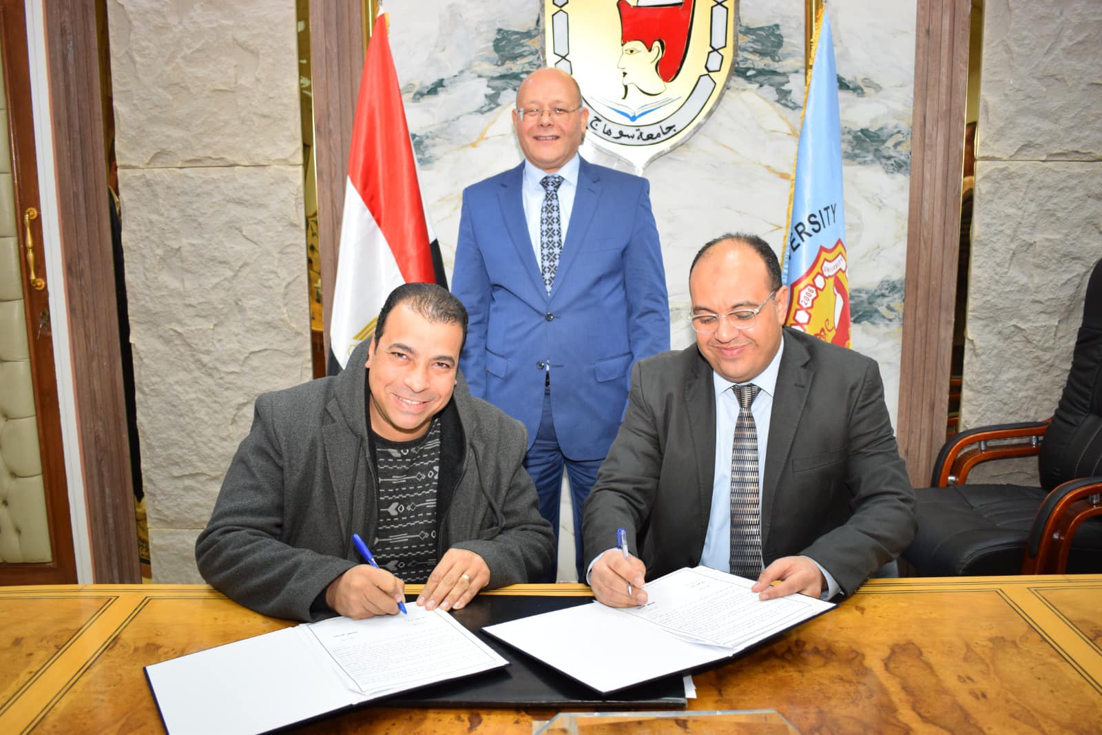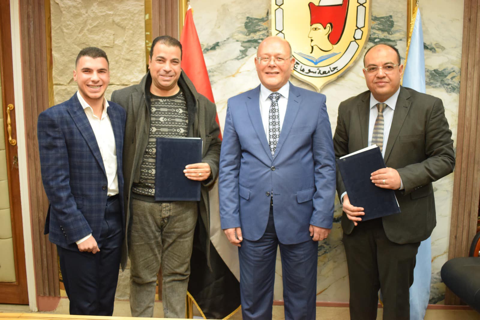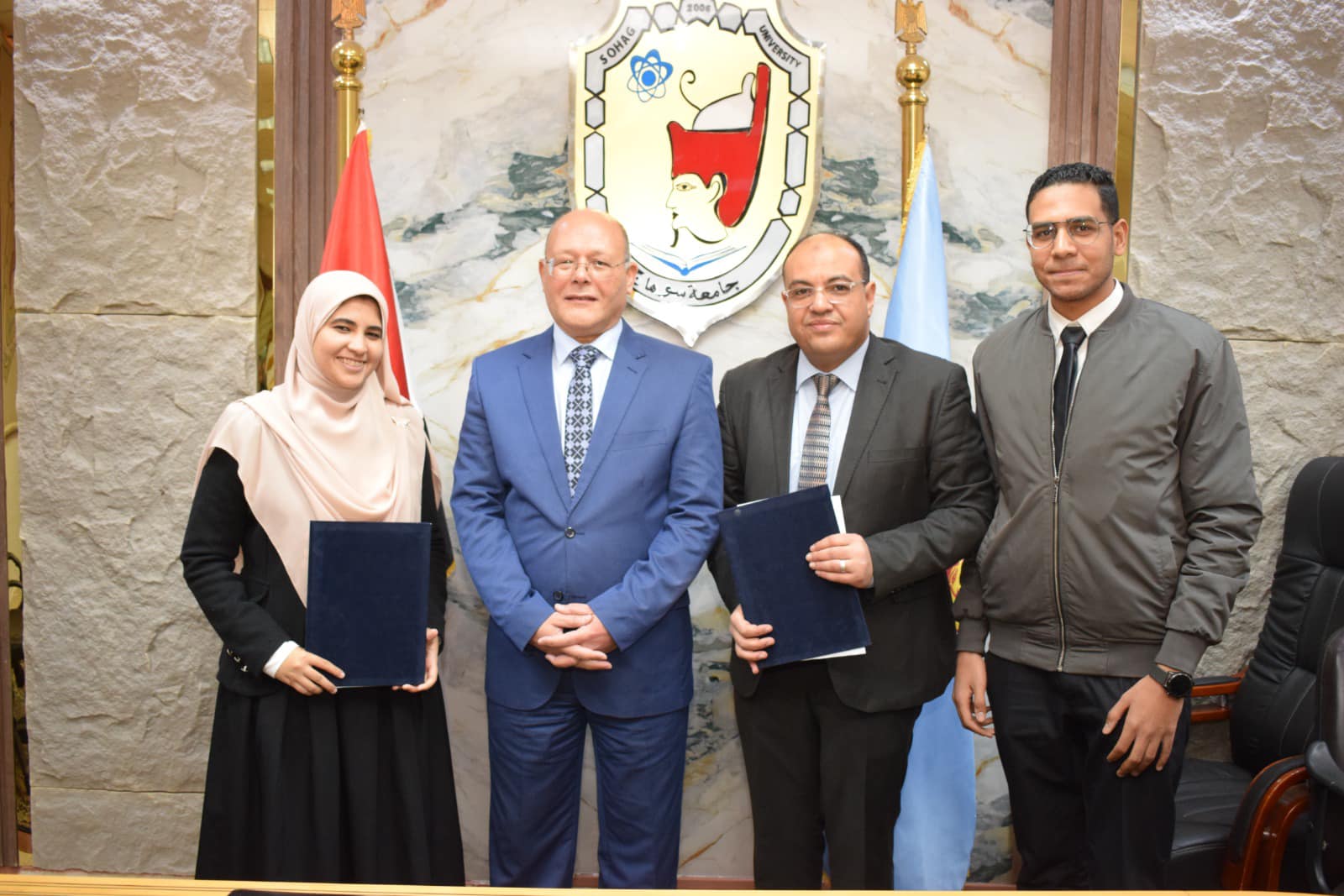 رئيس جامعة سوهاج يوقع ٦ عقود رعاية مبتكرين لعدد من الإختراعات منها عصا ذكية متكاملة للتنقل الآمن وجهاز محمول رفيق المكفوفين و منتج غذائي لتنشيط الذاكرة