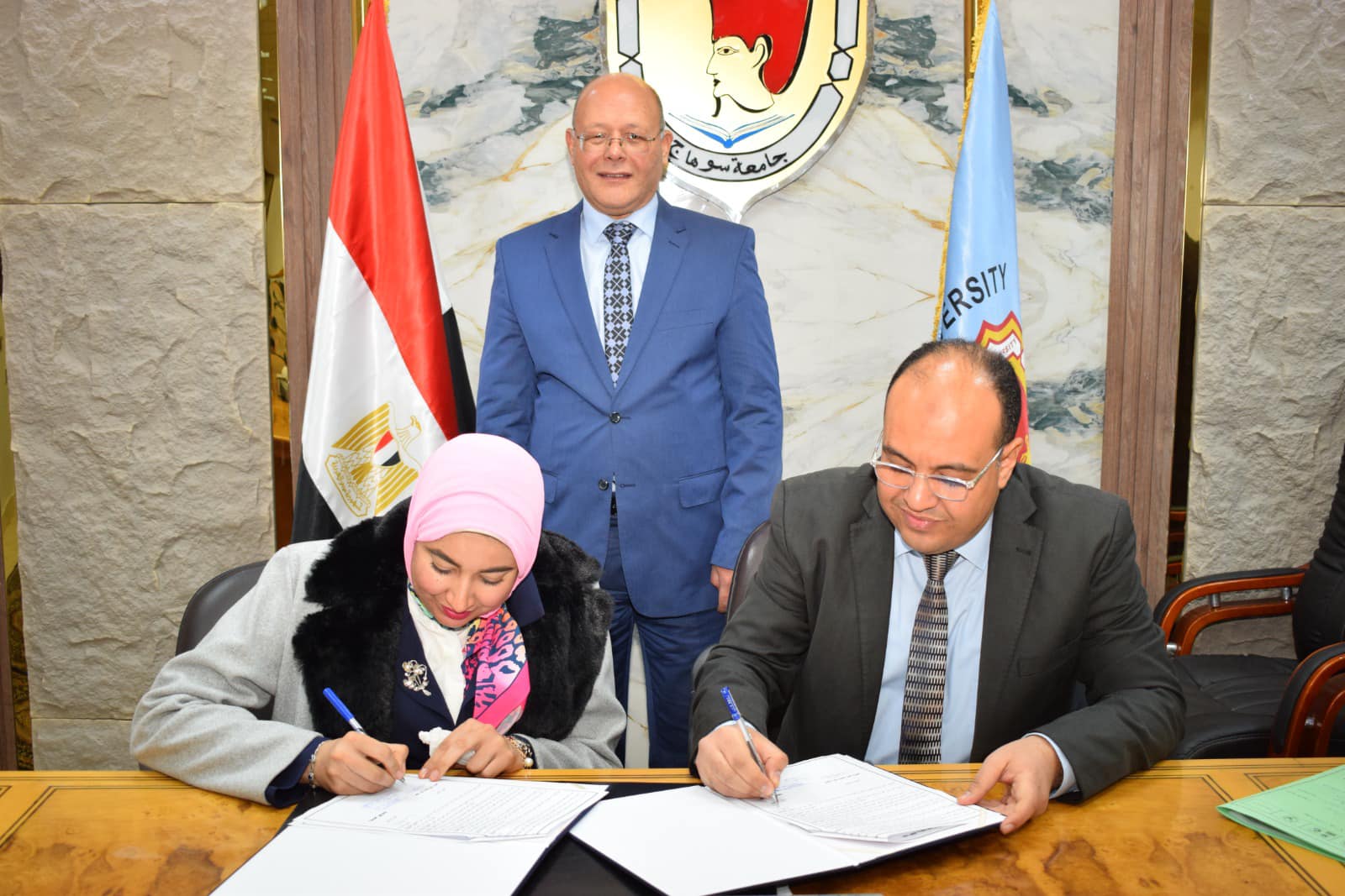 وقع الدكتور حسان النعماني رئيس جامعة سوهاج، ٦عقود رعاية المبتكرين مع عدد من الشباب أصحاب المشروعات والأفكار المبتكرة، وذلك فى إطار حرص الجامعة على الاهتمام بالطلاب والشباب المبتكر من خلال ماتقدمه مكاتب التايكو من خدمات، وماتوفره من دعم ورعاية للطلاب الموهوبين والنوابغ، تنفيذاََ لتوجيهات القيادة السياسية ومبادرة الابتكار المستدام التي اطلقتها وزارة التعليم العالي بضرورة نشر الوعي التثقيفي بأهمية الابتكار وريادة الأعمال، واكتشاف الشباب المبتكر ومساعدتهم على تحويل أفكارهم إلى منتجات وخدمات ذات جدوى.