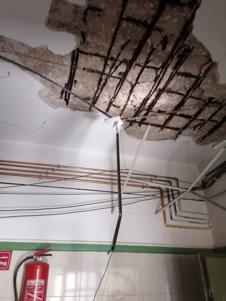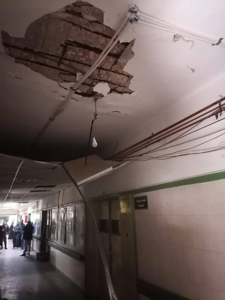 وجدير بالذكر، أن مبني العلاج المجاني القديم قد تعرض فى الشهور الماضية لحادثة تساقط الغطاء الخرساني للأسقف بعدد من الغرف والطرقات بجميع الأدوار نتيجة تآكل حديد التسليح بدرجة كبيرة، وعقب تكرار تلك الواقعة تم تشكيل لجنة من الإدارة الهندسية لفحص المبني وَتبين وجود شروخ مائلة بالحوائط، وتكسير بعدة أعمدة نتيجة وجود رطوبة، إلى جانب وجود رشح بالحوائط الخارجية، وسوء حالة دورات المياه، لذا أقرت اللجنة بضرورة إخلاء المبني والتقدم بطلب لإزالته بالكامل، كما تم تشكيل لجان وتخصيص بدائل للأقسام المتواجدة به وتسكينها لحين تشغيل مبني الجراحات المتخصصة، حيث ان المبني المجاني يضم كلاً من قسم الاستقبال والطوارئ بالدور الارضي وأقسام العظام والباطنة والأطفال بالأدوار العليا.