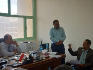 قد تناول الباحثين بالكلية استعراض خططهم البحثية أمام الدكتور صدقي و الدكتور حمدى والسادة مشرفي الرسائل العلمية الأستاذ الدكتور أحمد منتصر كلية التعليم و التكنولوجيا و الأستاذ الدكتور أحمد خالد بكلية الهندسة و الأستاذ الدكتور محمد إسماعيل بقسم الكيمياء كلية العلوم و الأستاذ الدكتور محمد عرابي بكلية الزراعة ذلك بشكل متتالي حيث إستغرقت فترة المناقشة حوالى نصف ساعة لكل خطة من الخطط المقدمة ما بين عرض مضمون الخطة البحثية لكل طالب و مناقشتها بشكل علمي , مدونين الملاحظات و العمل على تفادى الأخطاء بها .