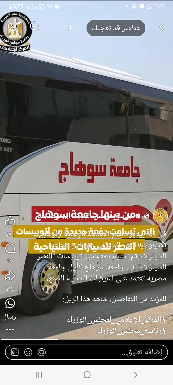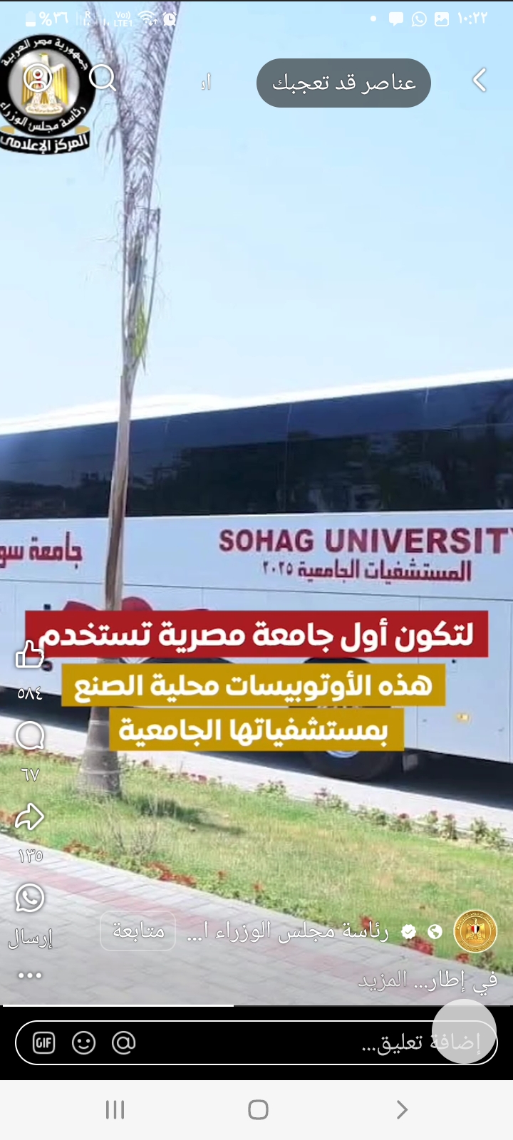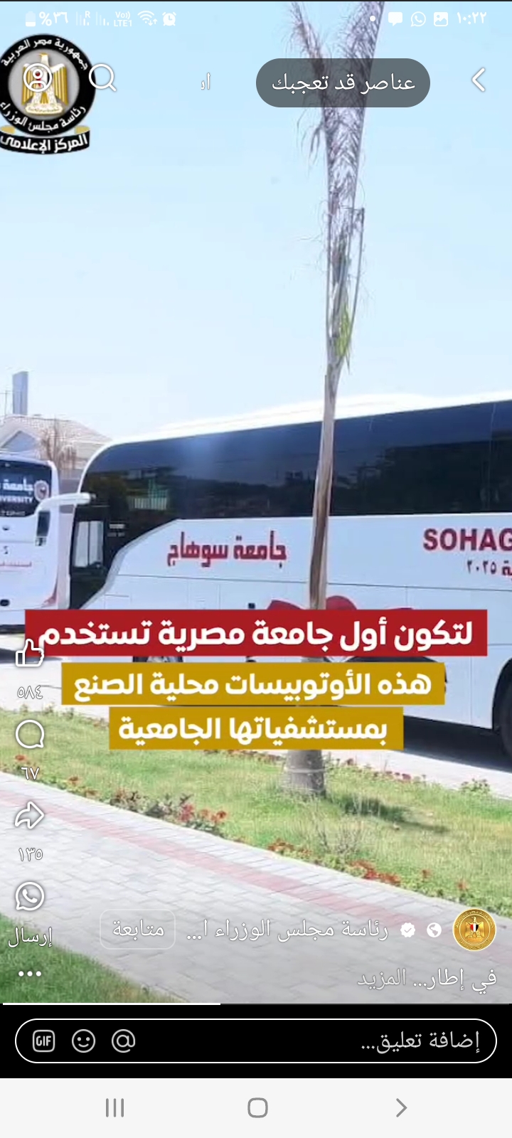 تعلن رئاسة مجلس الوزراء بأن جامعة سوهاج اول جامعة مصرية تعتمد على المركبات المحلية الصنع . و ذلك وفق أطار جهود دعم الصناعة الوطنية و توطين تكنولوجيا النقل الجماعي و توطين صناعة السيارات كما هو موضع بالفيديو على الرابط الاتى :
