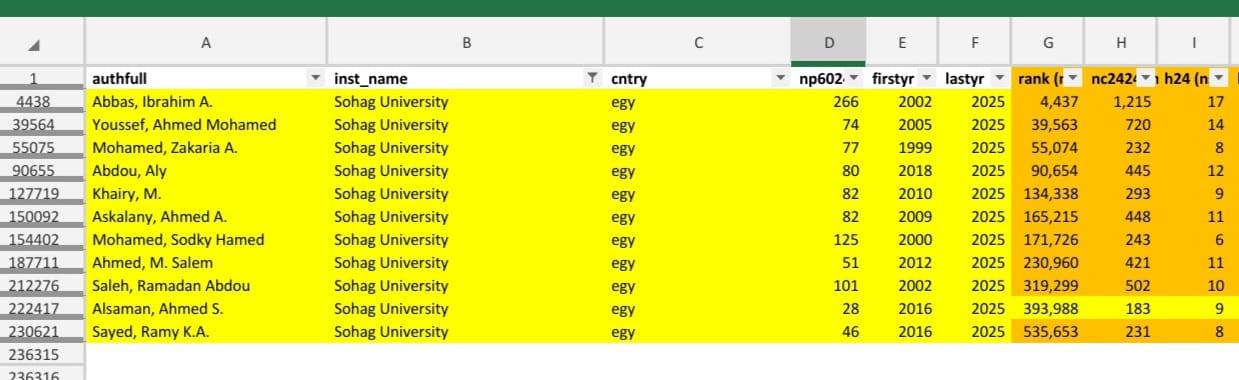 أعلن الدكتور حسان النعماني رئيس جامعة سوهاج عن تحقيق الجامعة إنجازاً علمياً جديداً بدخول ١٣ عالماً من أعضاء هيئة التدريس ضمن قائمة أعلى 2% من العلماء الأكثر تأثيراً على مستوى العالم، وفقاً لتصنيف جامعة ستانفورد الأمريكية لعام 2025 وذلك من بين 1106 علماء مصريين أدرجوا في هذه القائمة المرموقة.