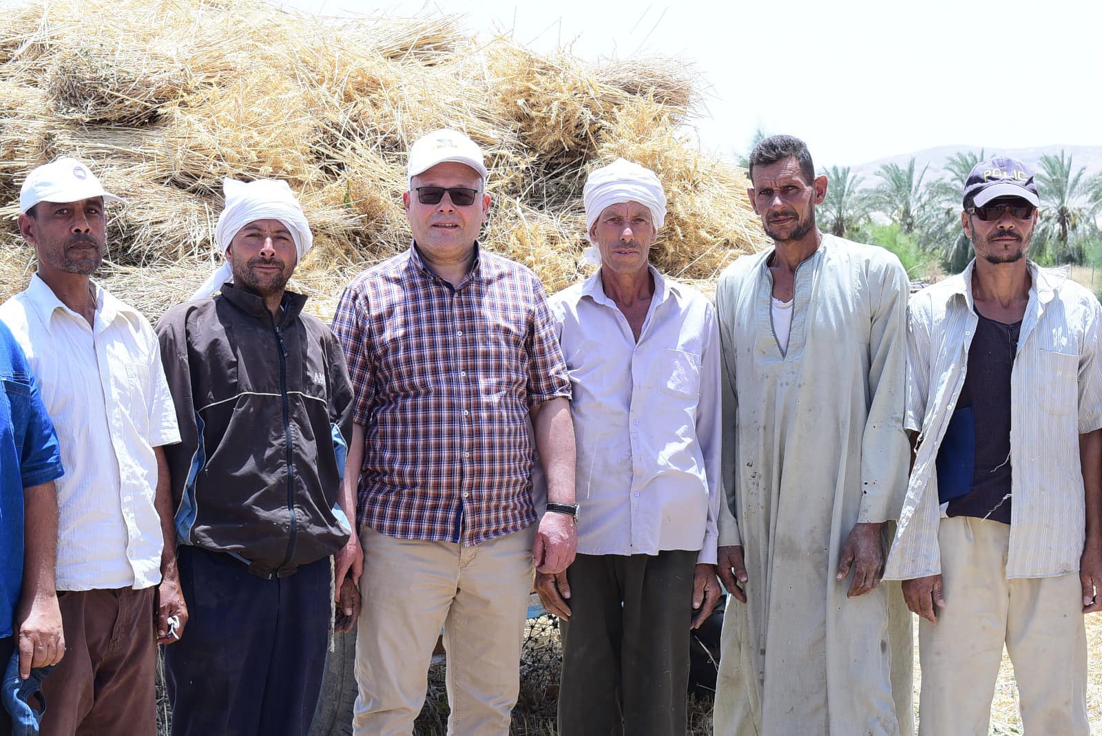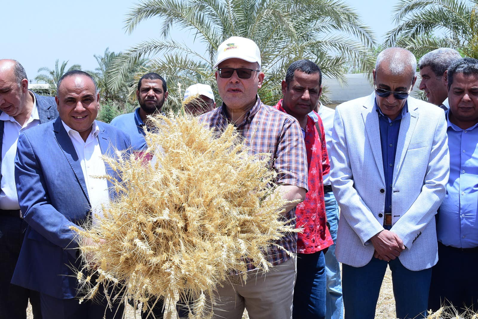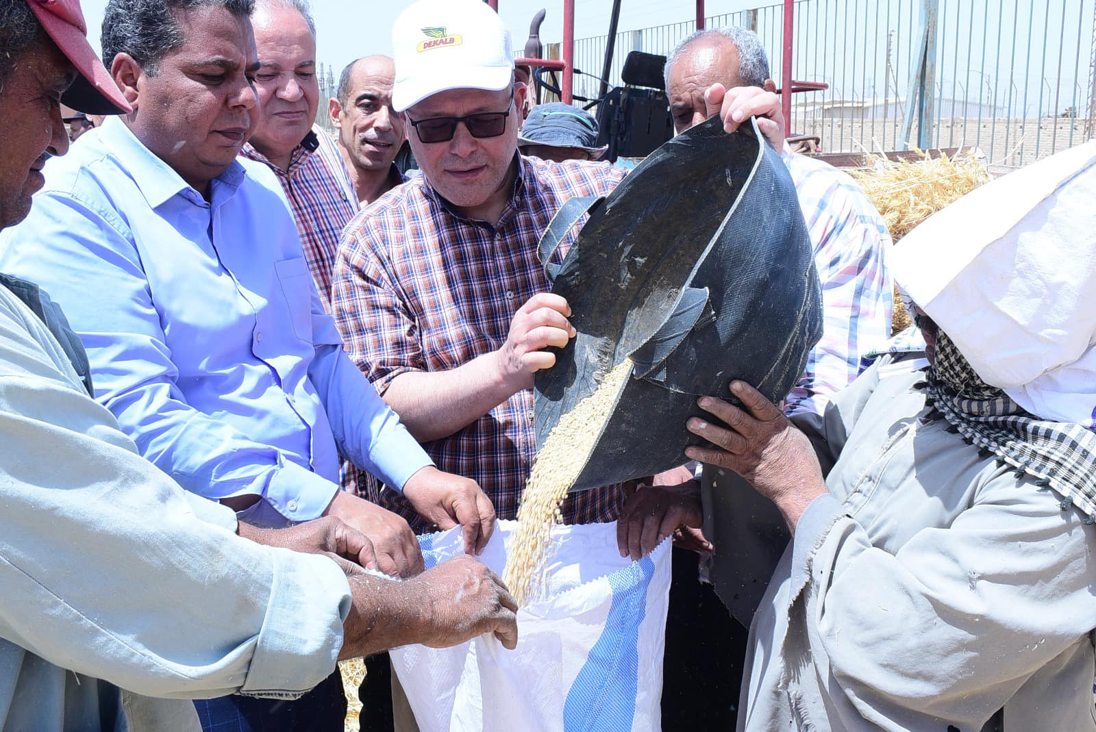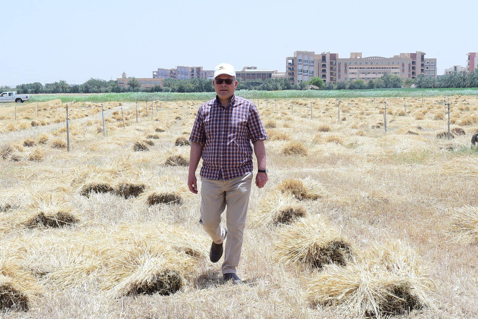 Dr. Hassan Al-Noamani, President of Sohag University, the wheat seed harvest season at the research training farm for the undergraduate and postgraduate students, based on the new university campus, accompanied by Dr. Abdel Nasser Yassin, Vice President of the University for Education and Student Affairs, Dr. Khaled Omran, Vice President of the University for Community Service and Environmental Development Affairs, and Major General Tariq Hafez, Director of University Security, Dr. Khalaf Hammam, Dean of the faculty, Dr. Zeinham Sheikhoun, Vice Dean of the faculty for Environmental Affairs and Community Service and General Supervisor of Farms, Dr. Abu Al-Hamad Al-Sayed, Vice Dean of the faculty for Postgraduate Studies and Research, Dr. Hani Ahmed, Vice Dean of the faculty for Education and Student Affairs, and Engineer Yasser Muhammad, farm director